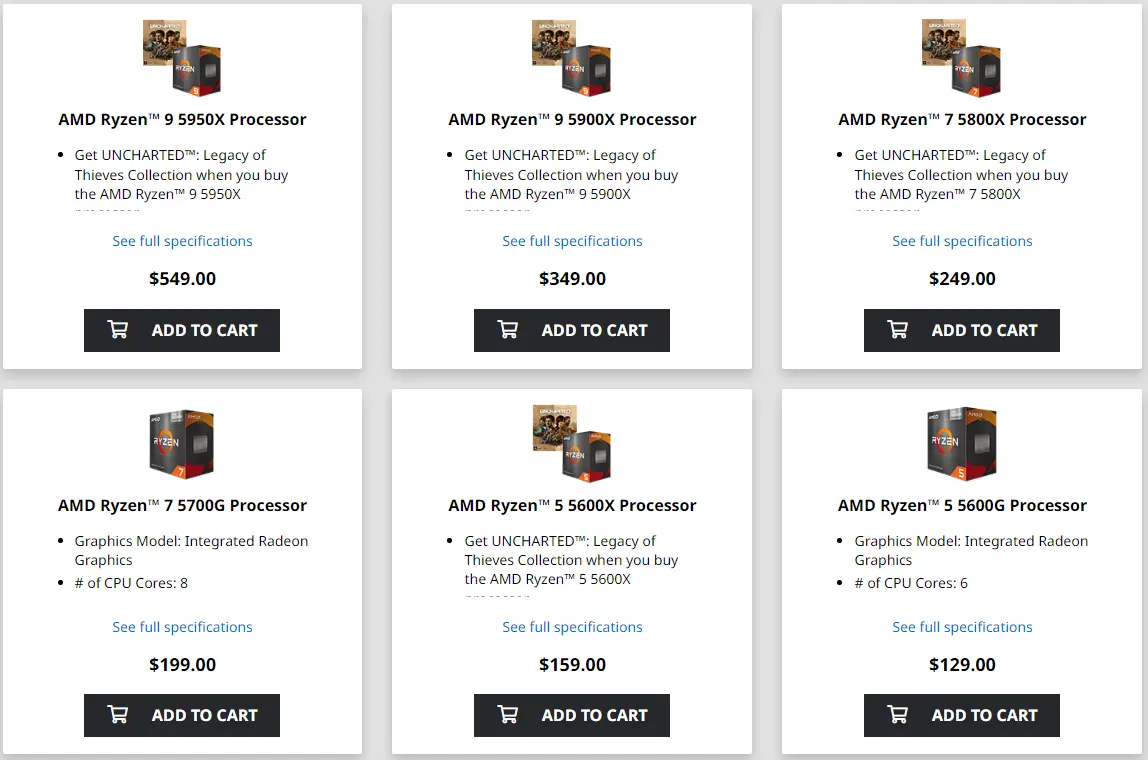 La lista de precios actualizada fue publicada en la tienda online de la compañía, donde los precios ahora parten desde los 129 dólares para el Ryzen 5 5600G con gráficos integrados y CPU de 6 núcleos.
